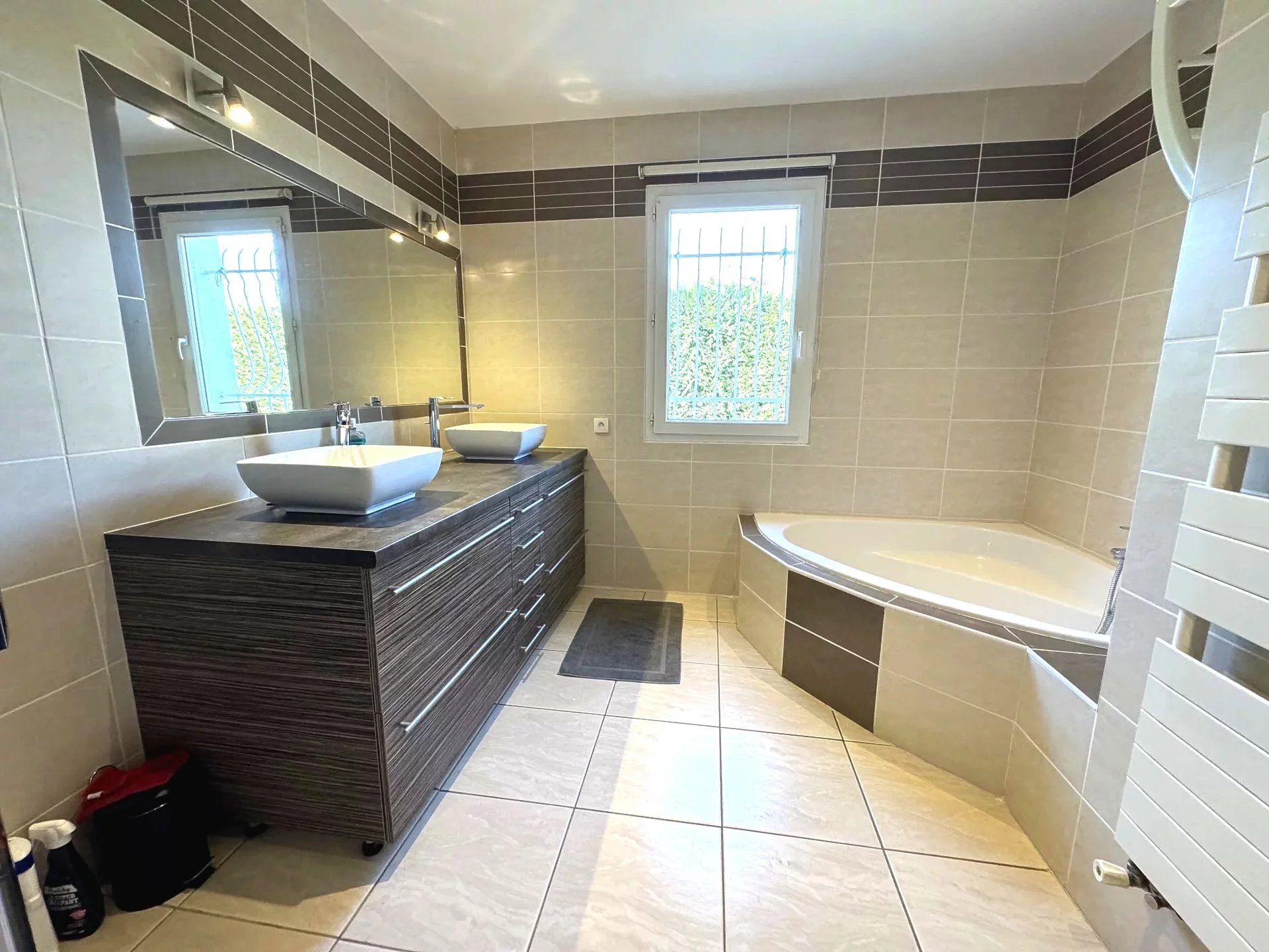 Dans un village avec toutes commodités en périphérie immédiate de Carcassonne, cette maison de plain-pied vous propose le meilleur du sud de la France : un jardin mature et arboré de plus de 1000m² avec piscine, terrasse avec barbecue et remise bâtis, exposé plein sud. A l'intérieur, une entrée avec placard s’ouvre sur une grande pièce de vie conviviale de plus de 60m², dont les grandes baies vitrées donnent sur le jardin et la piscine. Une cuisine ouverte complète cet espace, avec son cellier attenant. A l’autre extrémité de la maison, le coin nuit comprend 4 chambres, chacune avec son dressing, une grande salle de bains et douche, un grand WC séparé avec lave mains. C’est aussi dans cette partie que se trouve l'accès au double garage. La climatisation et le chauffage sont assurés par une pompe à chaleur gainée et réglable pièce par pièce, à laquelle s’ajoute une chaudière gaz récente contrôlant le chauffage au sol. Les fenêtres en double vitrage sont munies de leurs volets roulants, manuels pour les chambres et automatiques pour le séjour. Le système de filtration de la piscine a été changé récemment, cette maison fait l’objet d’un entretien régulier et vous garantit un confort et des prestations de qualités, recherchées dans la région.