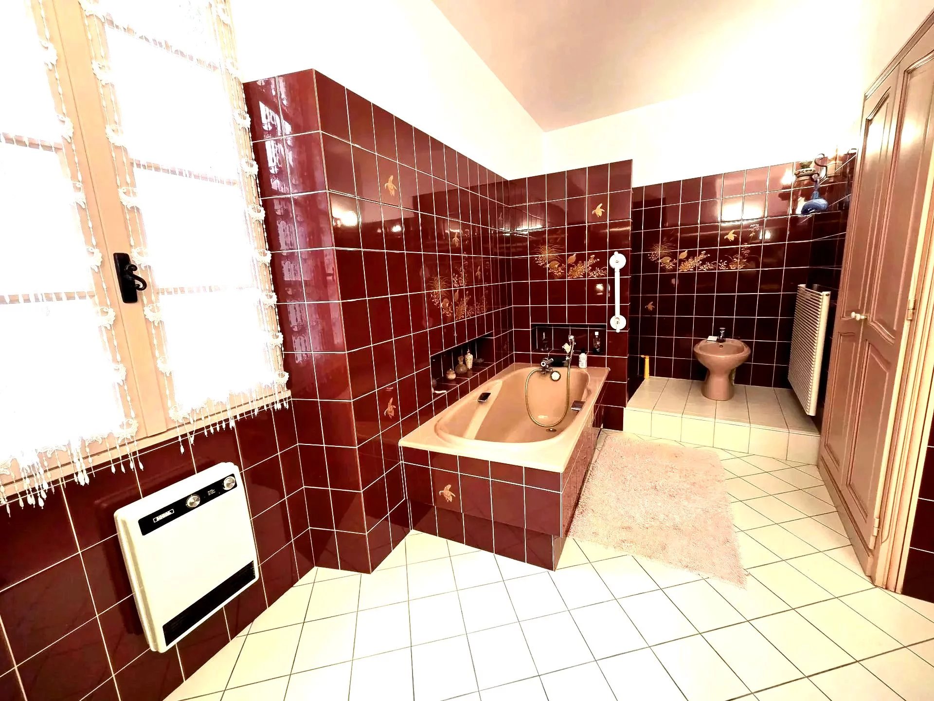 Espace Bien-être : Une grande salle de bains familiale équipée d'une baignoire et d'une douche, alliant confort et praticité.